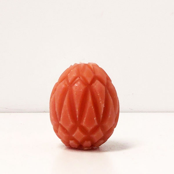 De kaars is in verschillende kleuren te verkrijgen. Het ei is 5 cm breed en 7 cm hoog.